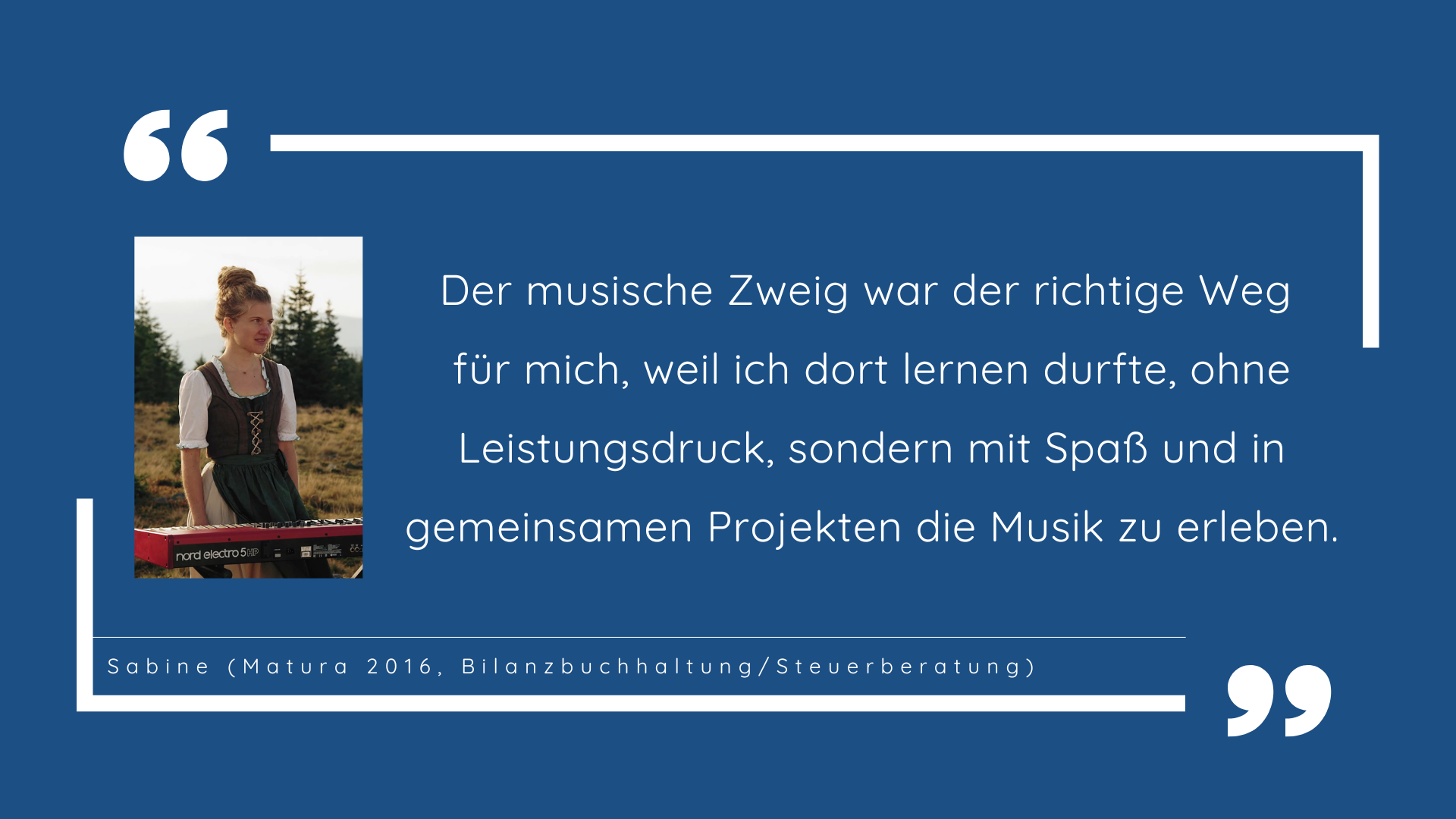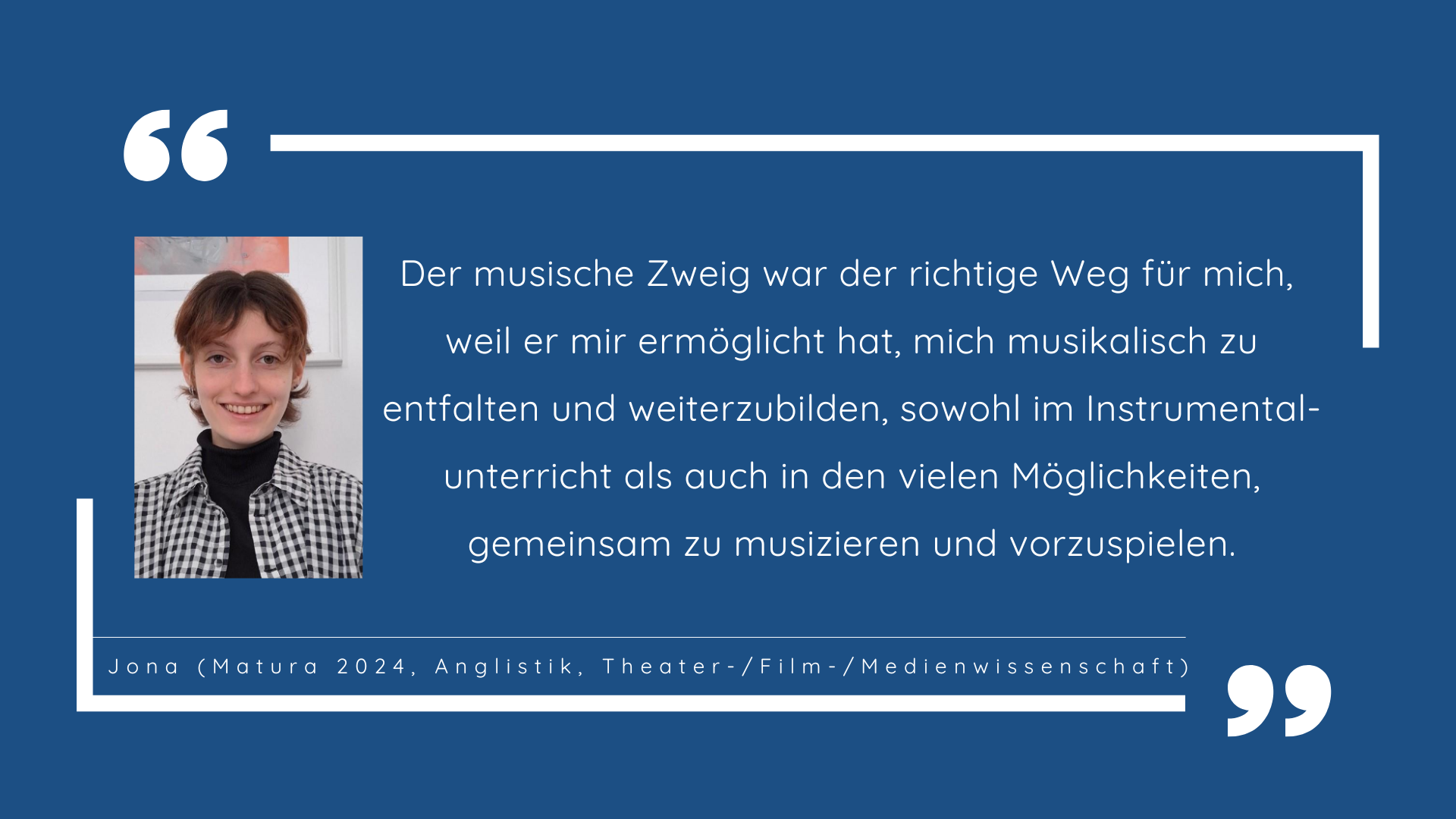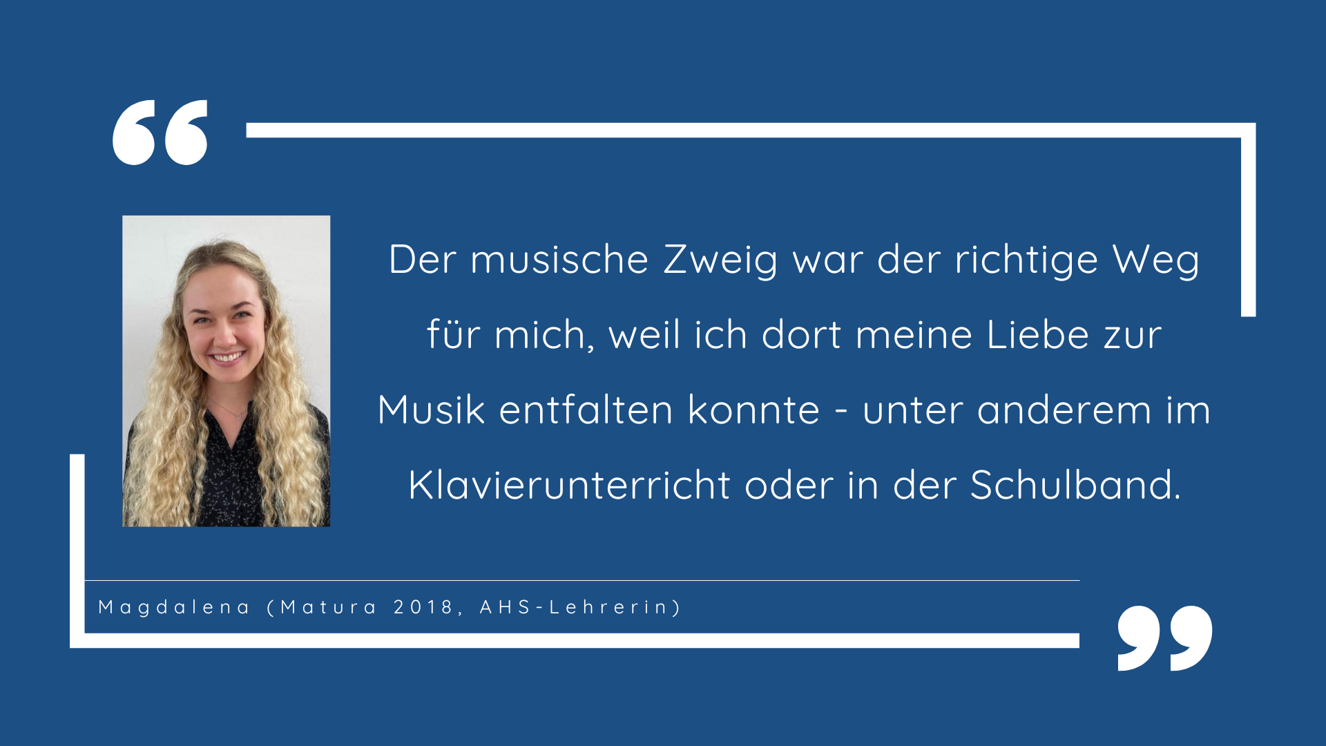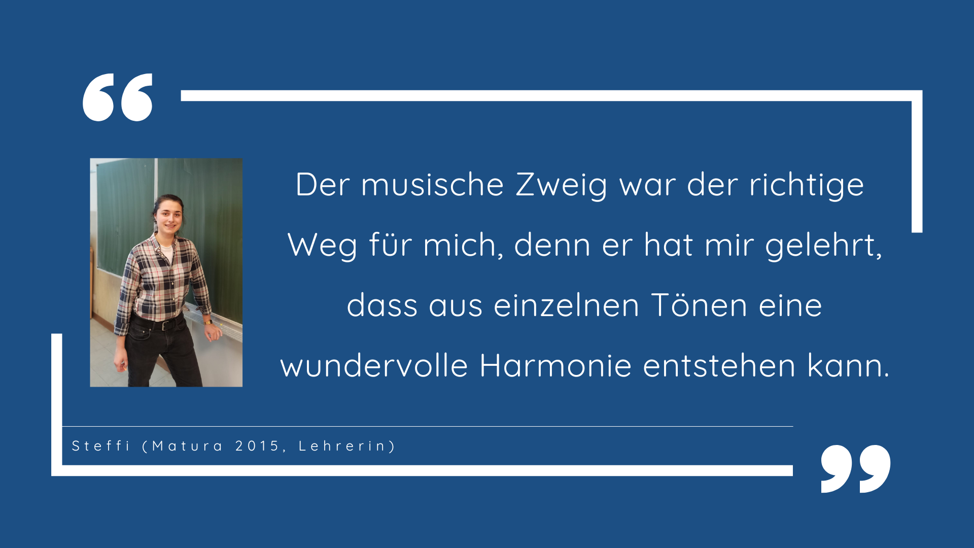 Jenen Schüler*innen, die ihr musikalisches und allgemein musisches Talent entwickeln oder ihre bereits erworbenen Kenntnisse in Musik und auf einem Instrument weiterbilden wollen, bietet der musische Zweig vielfältige Möglichkeiten in den Fächern Musik und Instrumentalunterricht, in den musischen Wahlpflichtgegenständen, im Chor und in der Schulband.